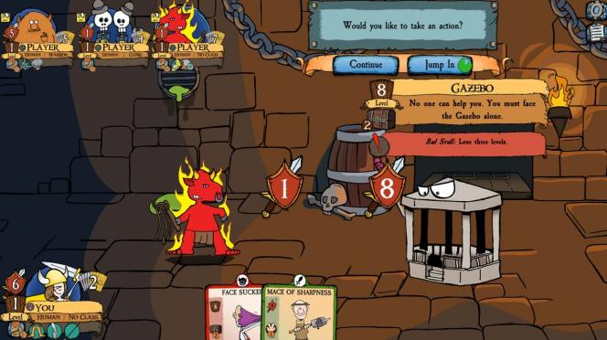 Классический геймплей: Игроки начинают игру в роли начинающих искателей приключений, исследуя подземелья, сражаясь с монстрами и собирая магические предметы. Цель игры — первым достичь десятого уровня, побеждая монстров и мешая противникам с помощью разнообразных карт.