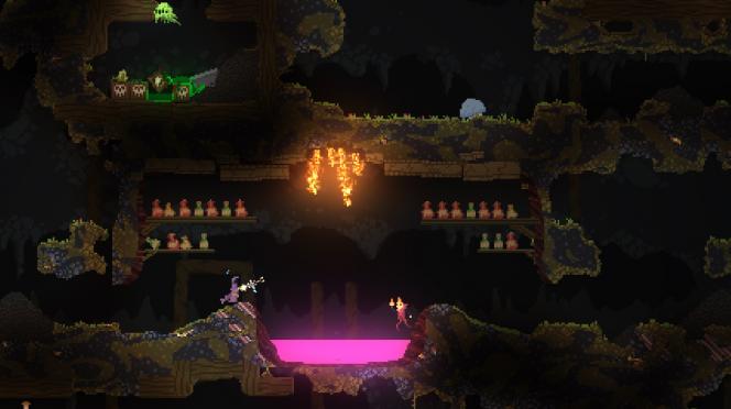 Noita — это рогалик с пиксельной графикой, в котором игрок управляет волшебником, исследует процедурно сгенерированные подземелья, экспериментирует с магией и сталкивается с опасными врагами и хаотичной физикой окружающего мира.