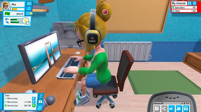 Каждый день необходимо планировать: снимать видео, монтировать, публиковать, следить за трендами и статистикой канала. Параллельно важно поддерживать учёбу, отдых, отношения с друзьями и хобби. У персонажа есть потребности: энергия, голод, настроение — они влияют на продуктивность и качество контента. С течением времени открываются другие направления: музыка, кулинария, мода. Все они требуют своей стратегии продвижения.